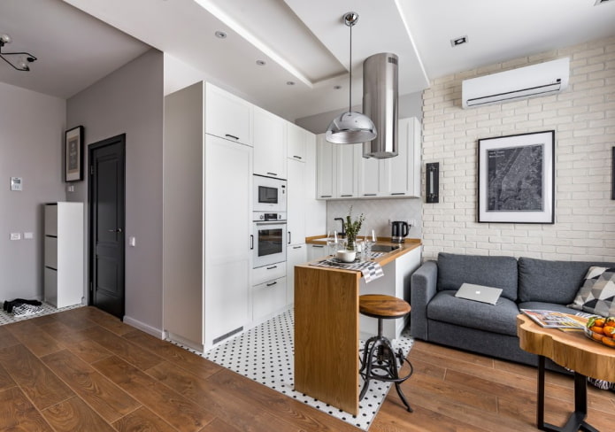Кухня в студии с барной стойкой: