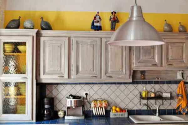 Пусть потолок будет светлым и иметь гладкую, а в зависимости от вкуса хозяина — глянцевую поверхность. Перегруженность кухни различными декоративными мелочами – статуэтками, свечками, безделушками, кухонной утварью и посудой также визуально не добавит кухне пространства.