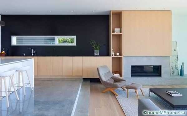 Широкое применение в зонировании находят островные камины. Этот элемент дизайна интерьера не только смотрится роскошно, но и дополнительно отапливает помещение. - С помощью части стены или арки.