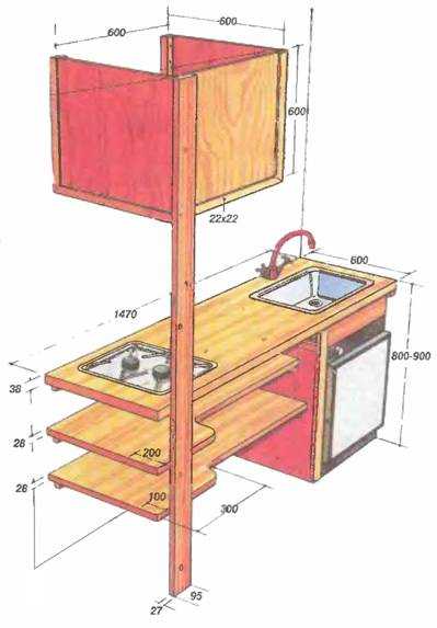 - вытяжной шкафчик для кухни закрепляем на той самой стойке;