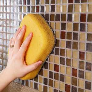 Для мытья кафеля применяются традиционные моющие средства, жировые пятна прекрасно удаляются губкой с помощью универсальных жирорасщепляющих химических препаратов, пятна белкового происхождения легко отмываются обычным хозяйственным мылом. После мытья фартук следует вытереть до блеска сухой фланелевой тряпкой.