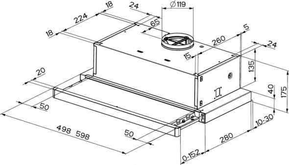 Схема вытяжки с выдвижным блоком с подробными размерами