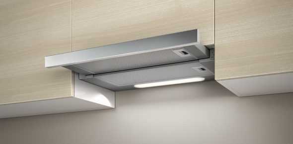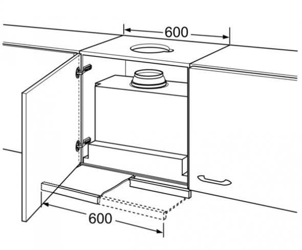 Наиболее распространенным вариантом является вытяжка встраиваемая в шкаф 60 см