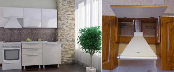 Тогда с ним нужно будет проводить дополнительные манипуляции – менять стенки соседних шкафчиков или мастерить новый короб, под размеры вытяжки. Правильно выбрав модель под кухню, помещающуюся вовнутрь, монтаж осилите сами, без помощи специалистов.