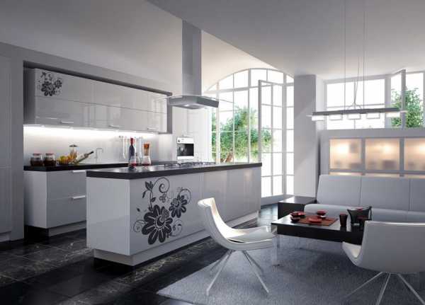 Классическое сочетание контрастов белого и черного цвета можно разбавить красной панелью.