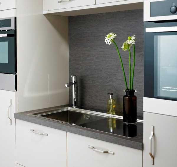 Фартук из этого материала можно смело устанавливать у самой плиты, так как никакой жар ему не страшен. Для чистки такого фартука можно использовать даже абразивные средства, ведь поцарапать его попросту невозможно.
