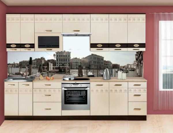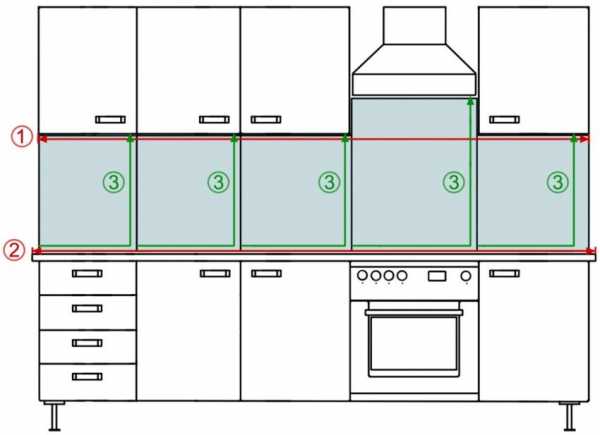 - если скинали на кухне переходит на разные поверхности, следует измерять суммарную длину панели;