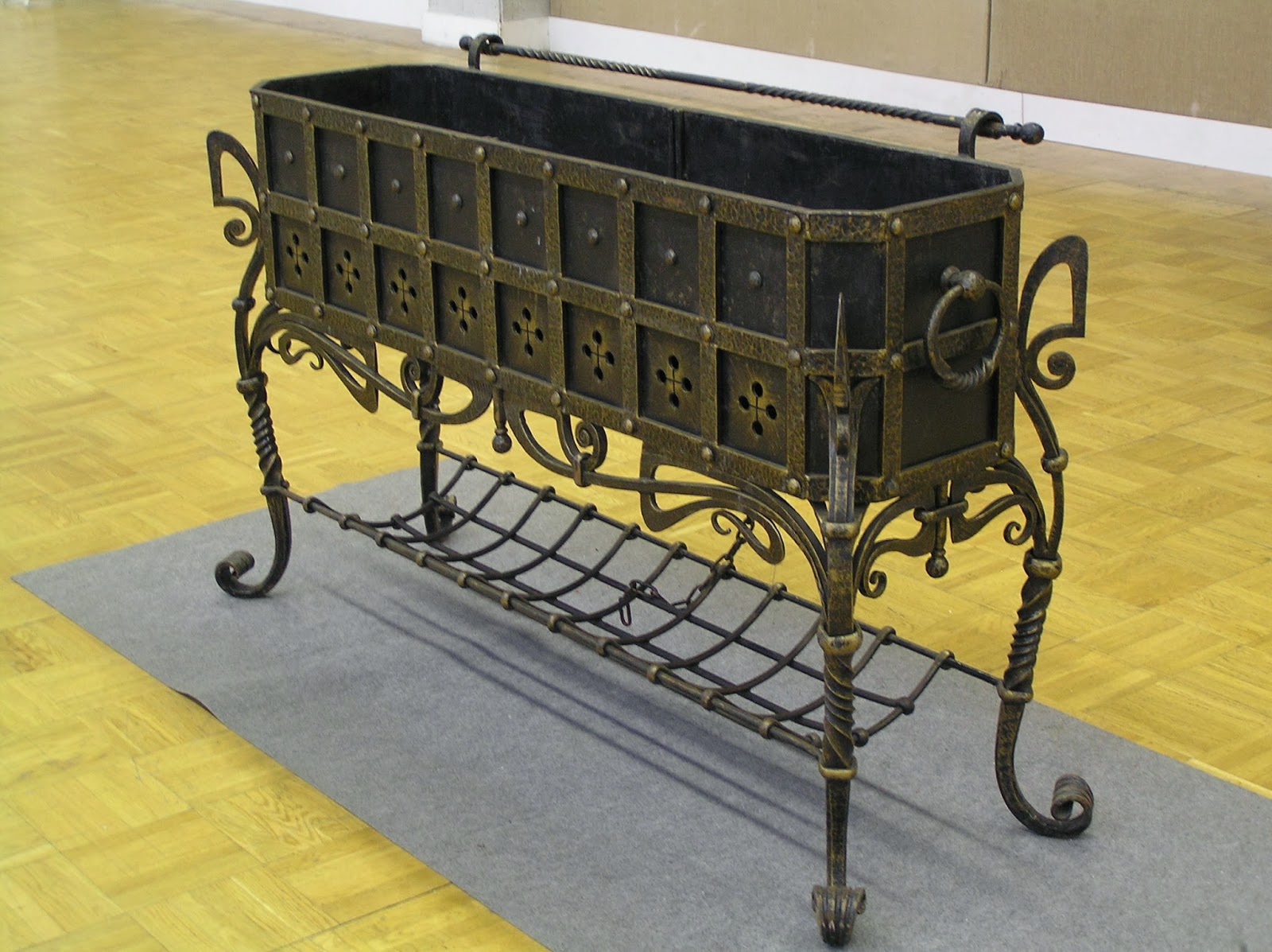 Художественная ковка по металлу активно используется для получения функциональных предметов декора – держателей для цветов, подставок для зонтиков, вешалок для одежды, ваз для цветов, рам для часов и зеркал, перегородок или ширм, каминных решеток или подставки под дрова.