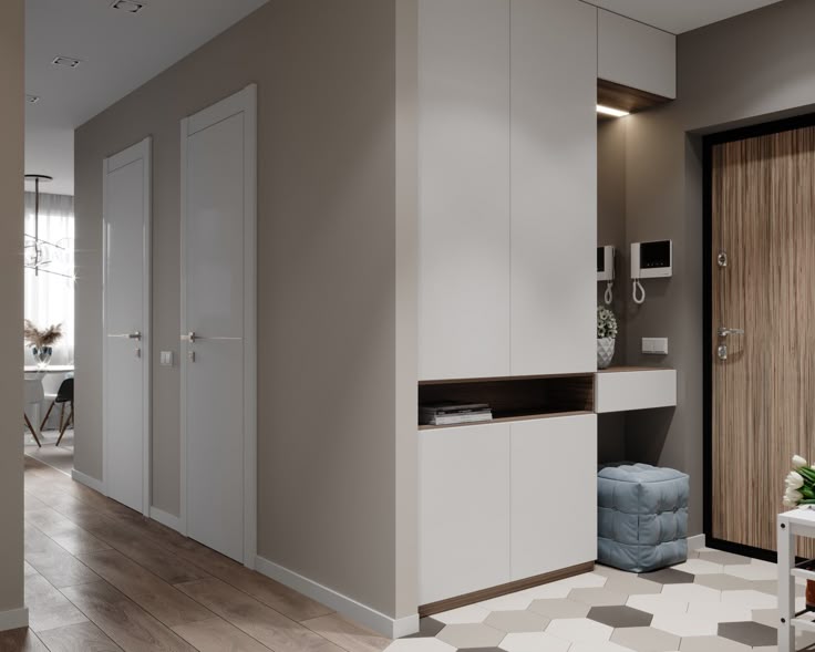 Не всегда в квартире должен быть коридор. В очень маленьких интерьерах, вы можете отказаться от него и увеличить пространство прилегающих комнат, будь то кухня или смежная комната.