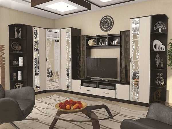 В качестве одного из способов зонирования потолка является использование натяжного потолка. Продолжая разговор о том, как украсить гостиную, подробнее остановимся на декорировании потолка. Самым бюджетным вариантом оформления потолочной поверхности является применение ПВХ пленок. Готовое покрытие имеет безупречный внешний вид, длительный эксплуатационный срок службы, приемлемую стоимость. На фото — гостиная «Марта», отвечающая всем требованиям интерьерного искусства.
