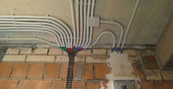 - Прокладываем коммуникации. Делаем электроразводку под все розетки, выключатели, осветительные приборы (монтировать их желательно после чистовой отделки стен), где это необходимо и на удобной высоте. Те же операции проделываем с разводкой труб под мойки, стиральную машину, полотенцесушитель и так далее.