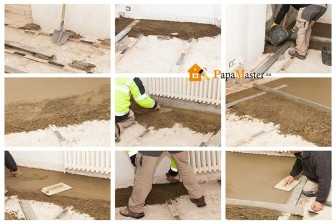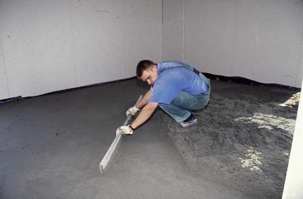 - Под выбранный тип напольного покрытия (линолеум, ламинат, паркет, плитка) делаем стяжку.