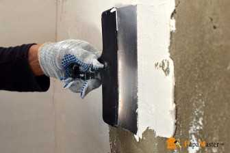 - Готовим стены, потолок под финишную отделку, выравниваем. Для этого понадобятся штукатурка, шпаклевка, шпатели, гладилка. Поверхности необходимо для начала очистить и протереть от пыли влажной тряпкой. Ровность слоев можно проверить с помощью уровня.