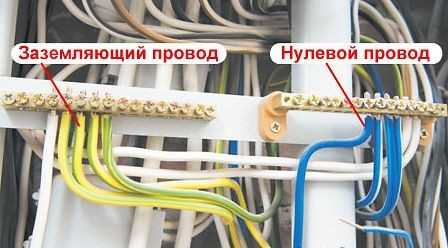 В распределительном щитке провод заземления подключается к специальной шине, или к корпусу и металлической дверке. В распределительной коробке соединение выполняется с аналогичными проводами, предусмотренными в светильниках и розетках, оборудованных специальными контактами заземления. Заземляющий провод не нужно подключать к устройству защитного отключения ( УЗО ), поэтому такие защитные устройства используются там, где для электропроводки применяется лишь два провода.
