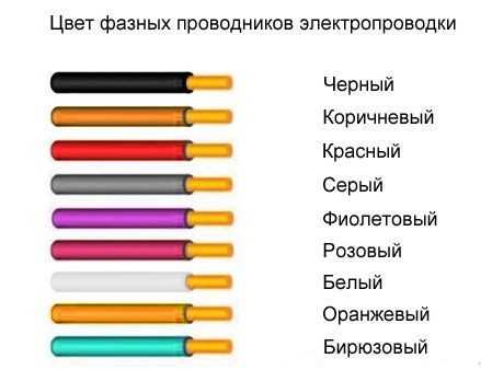 черного, коричневого, красного, фиолетового, серого, розового, белого, оранжевого, бирюзового цвета — для обозначения фазного проводника.