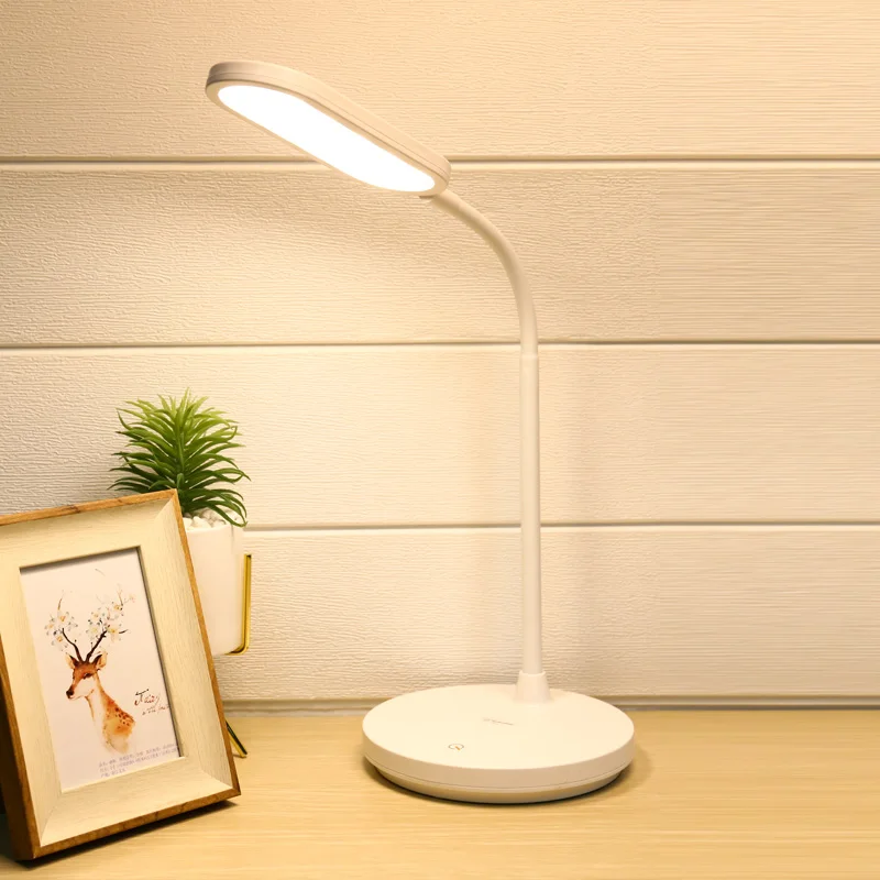 Белая настольная лампа с регулируемой яркостью и управлением прессой перезаряжаемая светодиодная настольная лампа заботящаяся о глазах офисная лампа для чтения и учебы