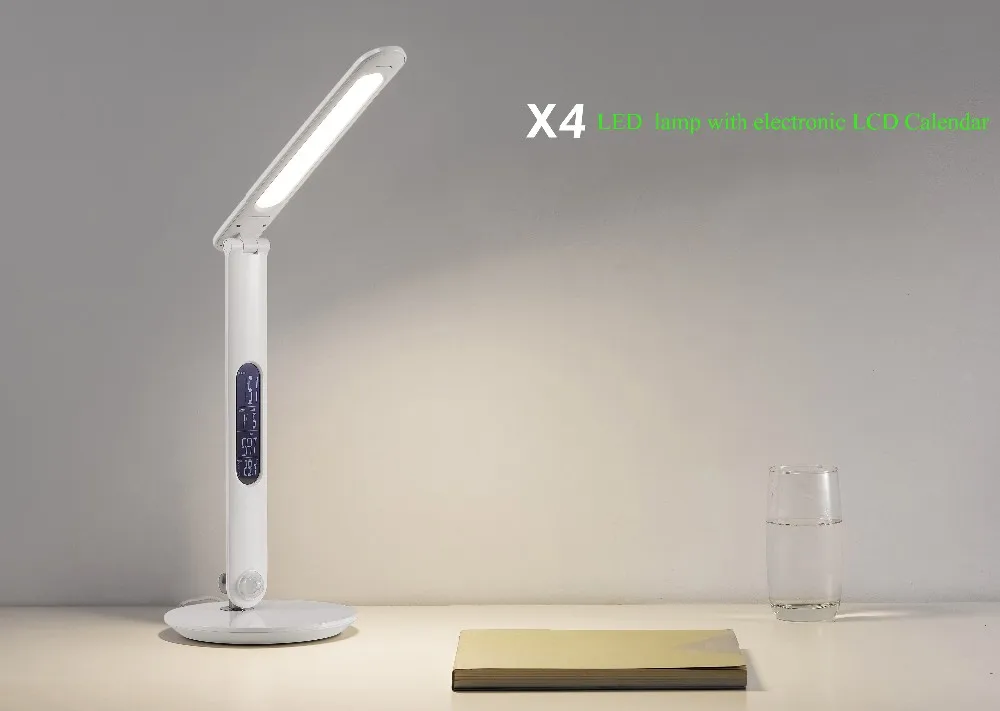 Светодиодная настольная лампа с USB зарядкой, ночсветильник с будильником, термометром, календарем, 3 уровня регулировки яркости, настольная лампа с держателем для ручки и вентилятором