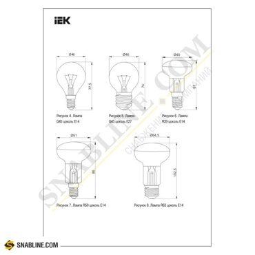 Выпускают рефлекторные лампочки с различными диаметрами, которые, как и в случае с шарообразными миньонами, обозначаются маркировкой R50, R63 и R80. Размер колбы не влияет на цоколь, он остается аналогичным.