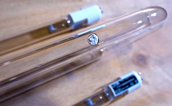 - Для обеззараживания воды. Лампы устанавливают в местах соединения труб в водопроводе. Проходящая через ультрафиолетовое излучение вода очищается от бактерий. Преимущество УФ ламп для воды перед фильтрами в том, что после очищения вода сохраняет полезные свойства.