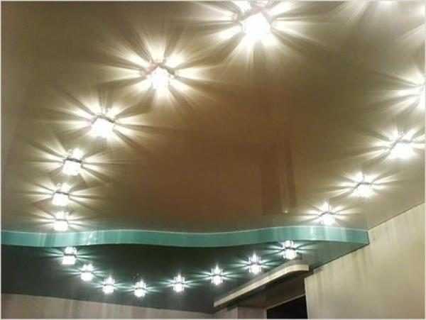 Натяжной потолок с точечными светильниками