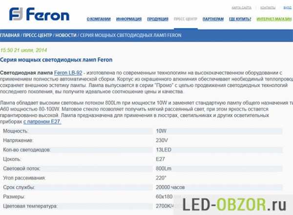 Чтобы лампа была эквивалентом источнику накаливания в 100 Вт, она сперва должна иметь немалые габариты. Некоторые производители могут вас откровенно обмануть, ведь не часто покупатель разбирается в Люменах и Ваттах. Например, известный производитель Feron заявляет, что ихние лампочки на 10W и яркостью 800 Лм заменяют обычные в 80-100 Вт.