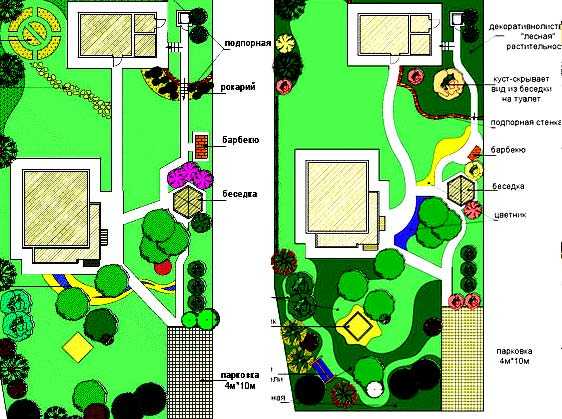 схемы варианта прямоугольной планировки и дизайна дачного участка