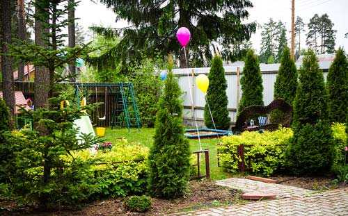 - Озеленение участка планируется с учётом предпочтения владельца. Хвойные деревья сажают вдали от соседской границы. Высокие растения отбрасывают большие тени.