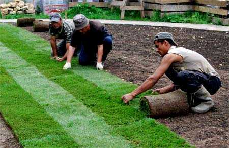 Процесс укладки газона на дачном участке