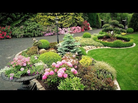 Все это окружается цветниками и гидротехническими сооружениями, такими как фонтан, водопад, пруд.