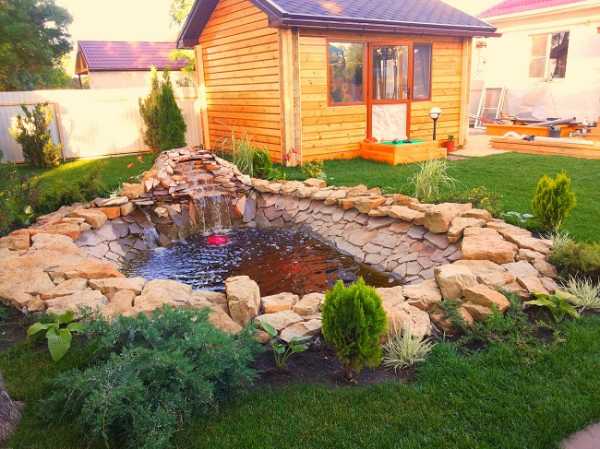 Ландшафтный дизайн двора частного дома обязательно должен иметь водный объект. Например, пруд или даже несколько прудов, объединенных ручейками, с озерными рыбками и лилиями на поверхности. Для картинной красоты не хватает разве что низко склонившейся березы. Впрочем, если не хватает – посадите!