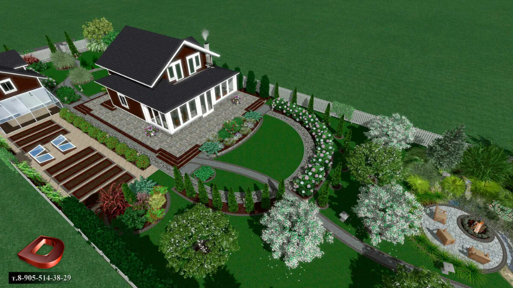 - 3D-визуализацию. Идеальная возможность увидеть будущий сад в реальности, самое лучшее наглядное пособие для клиента, альтернатива сложным схемам и чертежам.