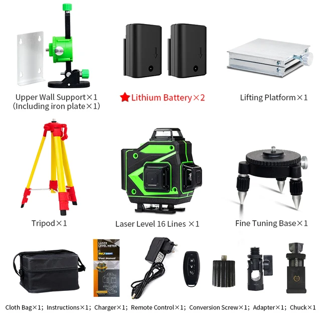 Таким образом, лазерные 3D-уровни идеально подходят для различных задач по нивелированию и разметке. Часто ремонтные бригады или профессиональные архитекторы покупают лазерные 3D уровни. 16-линейный лазерный уровень также становится 4D-лазерным уровнем, что позволяет пользователям располагать его по горизонтали, выравниванию, квадрату и вертикали, создавая лазерную плоскость 4*360° (две горизонтальные линии и две вертикальные линии).