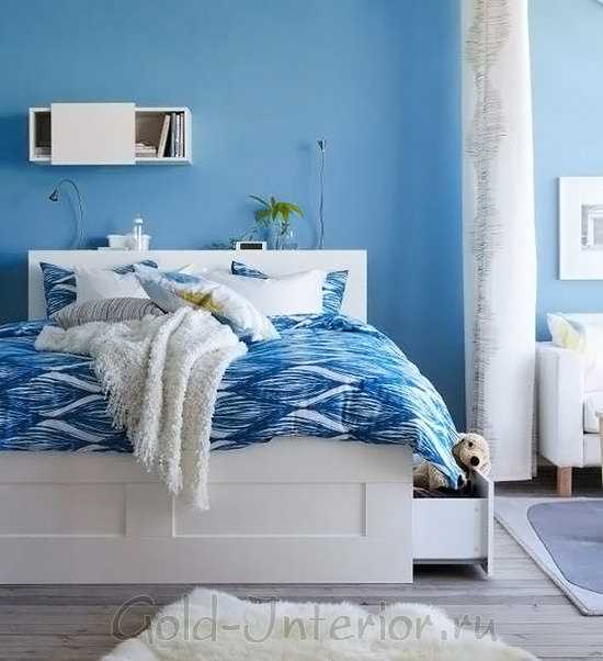 Кроме того, у нас уже опубликованы другие галереи на тему сочетаний голубого цвета в спальне: голубой + белый, голубой + шоколадный (коричневый, бежевый). Ссылки — в конце этой публикации.