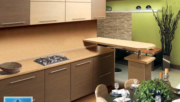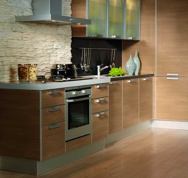 Традиционным материалом для мебели всегда было дерево. Безусловно, это прекрасный материал, однако на кухне, во всяком случае в рабочей зоне, он не всегда себя оправдывает. Дерево под действием влаги и перепадов температур изменяется в объеме, причем весьма заметно. А это означает набухшие дверцы шкафов, коробление корпуса, изменение формы столешницы и так далее.