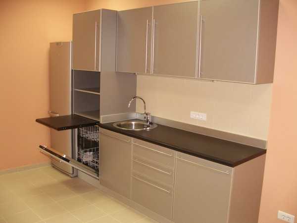 Практичнее использовать фасады из ЛДСП в алюминиевой рамке, но тогда возрастает стоимость кухонного гарнитура.