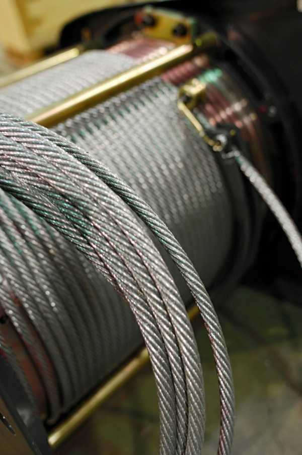 Больше всего нагрузок воспринимают трос или канат. Вследствие этого они являются самыми быстроизнашивающимися частями электрической лебёдки. Чтобы избежать их внезапных разрывов при подъёмах или спусках, выбирают эти части очень тщательно.