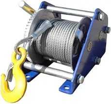 Классическая ручная лебёдка имеет шкив для наматывания троса и ручку, выполняющую роль рычага, с помощью которой осуществляется вращение барабана. Равномерную навивку троса обеспечивает тросоукладчик.