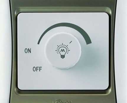 - Механический. Освещение регулируется путём воздействия на клавишу или поворотную ручку диммера. Отличается достаточной надёжностью в использовании и невысокой стоимостью.