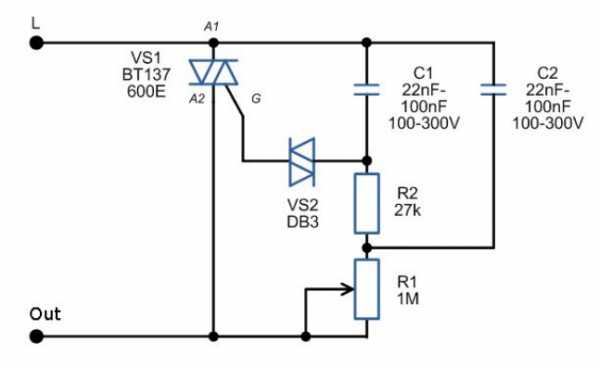 Традиционная схема диммера для ламп накаливания несложна и включает лампу через