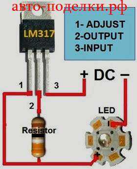 За основу всей схемы берется микросхема интегрального типа LM317. Она выступает в качестве стабилизатора напряжения и позволяет получать регулируемое выходное напряжение. Данный драйвер позволяет работать при входном напряжении 9-25 В.