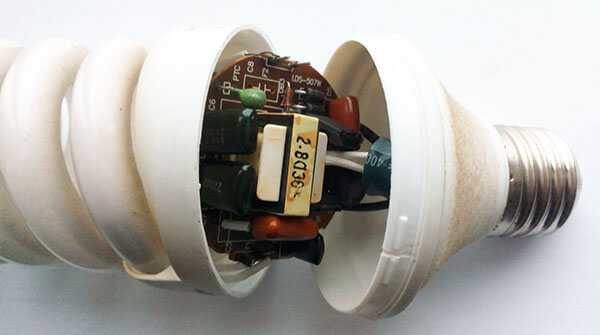 Обычная энергосберегайка, она же компактная люминесцентная лампа или КЛЛ, содержит в себе электронное устройство, обеспечивающее поджег и горение газоразрядных ламп. КЛЛ имеют очень приличный срок службы – до 10 000 часов, но с течением времени яркость их свечения снижается, они начинаю сильнее греться, начинают мерцать или вообще перестают светить. При этом, чаще всего, из строя выходит именно «стеклянная часть» лампы, а ее электроника остается в полном порядке. Поэтому, для экспериментов вполне подойдет старая лампа, которая перестала работать, а вы ее почему-то не выбросили. Если есть выбор, то лучше взять лампу помощнее. У меня для опытов оказался пациент, изображенный на картинке в начале статьи.