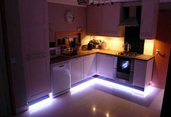 Лента в нижней части кухонных шкафовСветодиодные ленты и их виды
