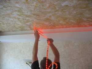 Укладка светодиодной ленты на потолке