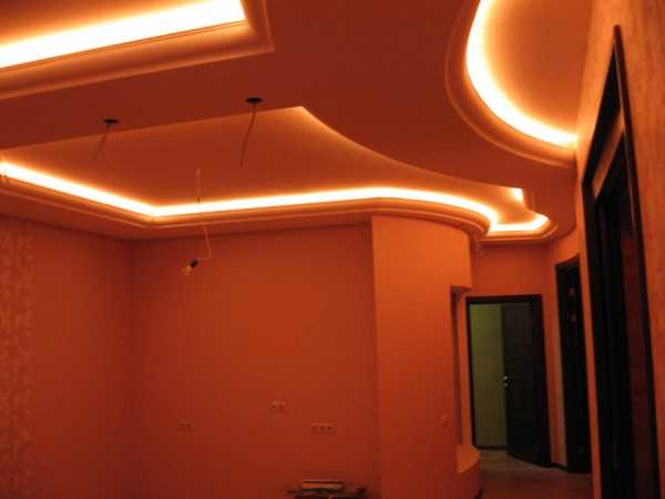 Больше всего светодиодная лента подходит для натяжных и гипсокартонных потолков.