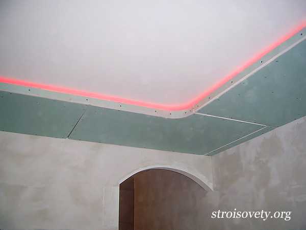 Установка гипсокартонной ниши для подсветки потолка светодиодной лентой: