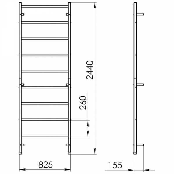 Это самая компактная конструкция, занимает очень мало места. Точнее сказать, она вообще не занимает ни сантиметра полезной площади комнаты. Пожалуй, на этом ее преимущества заканчиваются. Потому что вертикаль — наиболее травмоопасная линия. Поскольку нет места для полноценных ступеней, их роль выполняют узкие дощечки или круглые поперечины. Поручней у детской шведской стенки тоже нет. В результате каждый подъем и спуск становится опасным путешествием, особенно для малышей.