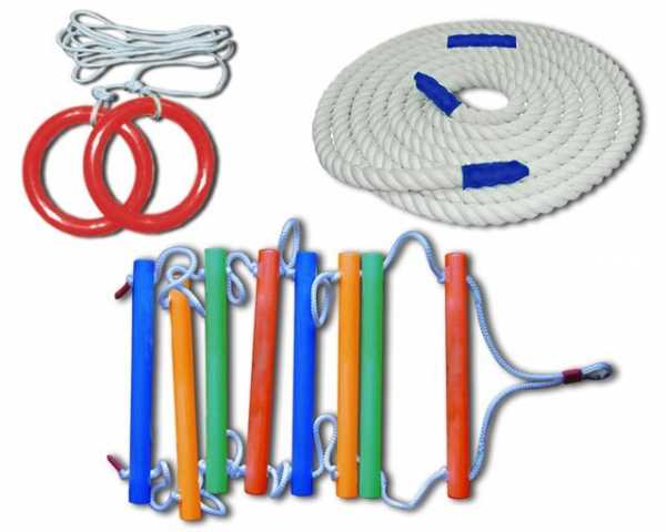Все комплектующие для спортивного уголка вполне можно приобрести в спортивном магазине уже в готовом видеОсновные детали