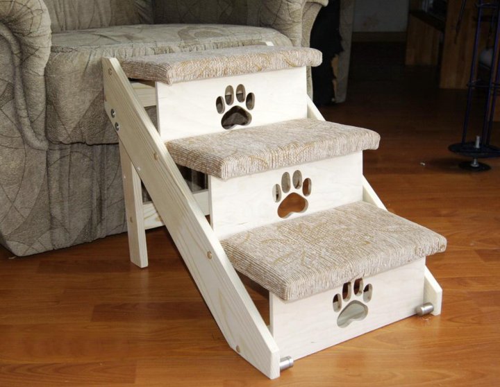 В результате выполнения вышеописанных этапов, должна получиться лестница для собачек. Ступеньки для собак — незаменимая вещь для людей, у которых есть небольшие собачки. Прежде чем использовать такое изделие, необходимо ознакомиться с его описанием, основными особенностями и разновидностями.