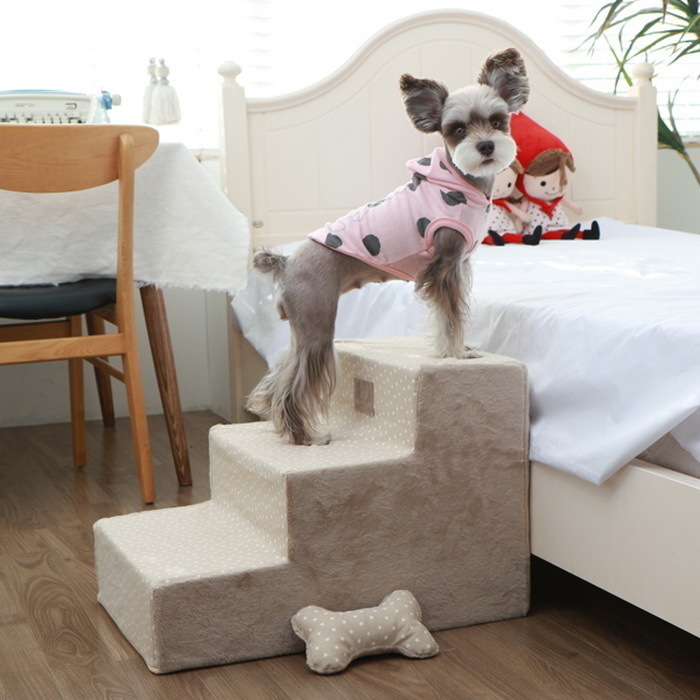 Однако иногда без таких вспомогательных приспособлений просто не обойтись. Такие ступеньки очень нужны людям, которые решили содержать дома маленьких собачек, щенков или старых питомцев. С их помощью животные смогут, например, без особых усилий подниматься на кровати и диваны.