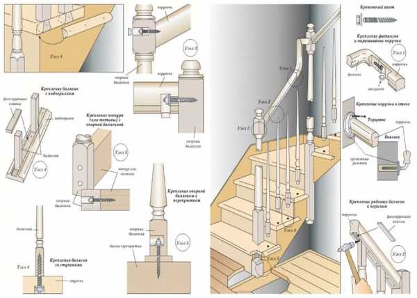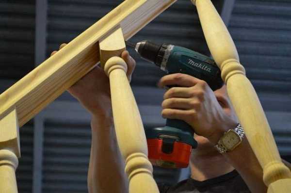 - Балясины фиксируют. Для этого используют либо деревянные шканты и клей, либо саморезы. Гвозди применять не рекомендуется.